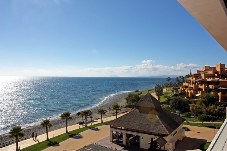 Exclusive beachfront apartment built and equipped with top quality materials and luxury finishing including Marble Flooring, Domotics and Fully Equipped Kitchen with Granite Worktop, among others. This stunning 2 Bed 2 Bath apartment property offers a great terrace enclosed with balcony glass with beautiful views to the sea. The property has a total of 170 sqm including 102 sqm living areas plus 37 sqm south facing covered terrace directly overlooking the Mediterranean and communal areas. Situated in the newly built luxurious beachside development next to the Kempinski Hotel and the fashionable Laguna Village, between the internationally known Puerto Banús and Estepona called the New Golden Mile, with a boardwalk that will connect you to Estepona in a few minutes walk, where you will find all kind of amenities and leisure areas, and 5 minutes drive to the nearest Golf course. This privileged and quiet Urbanization offers illuminated tropical gardens and 2 outdoor swimming pools for adults and children, with leisure areas where you can find a heated indoor pool, Gym, Spa, covered paddle court with glass walls and indoor space for social activities as well as direct and exclusive access to the beach make the apartment an ideal solution for first residence as well as to enjoy a second holiday residence with unique landscape and fantastic rental potential. The access to the complex is controlled at all times by a security booth. Private parking and storage room included.